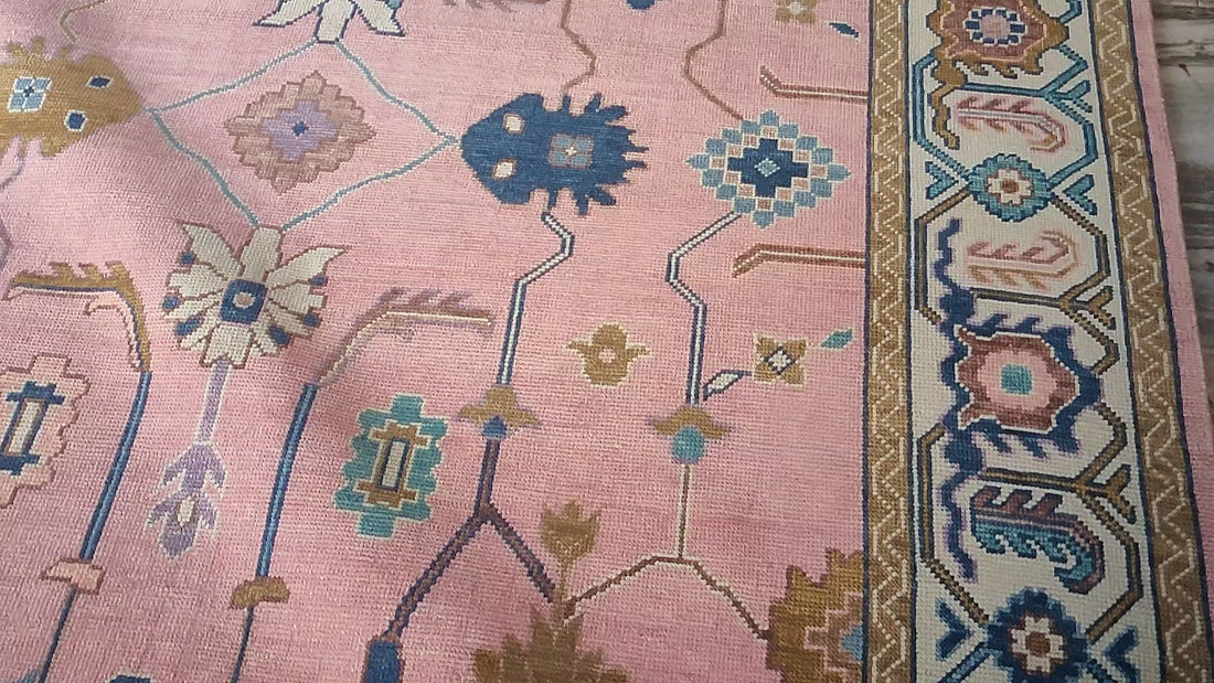 Colorful Pastel Oushak Rug – Traditional Hand-Knotted Turkish Wool Carpet for Living Room