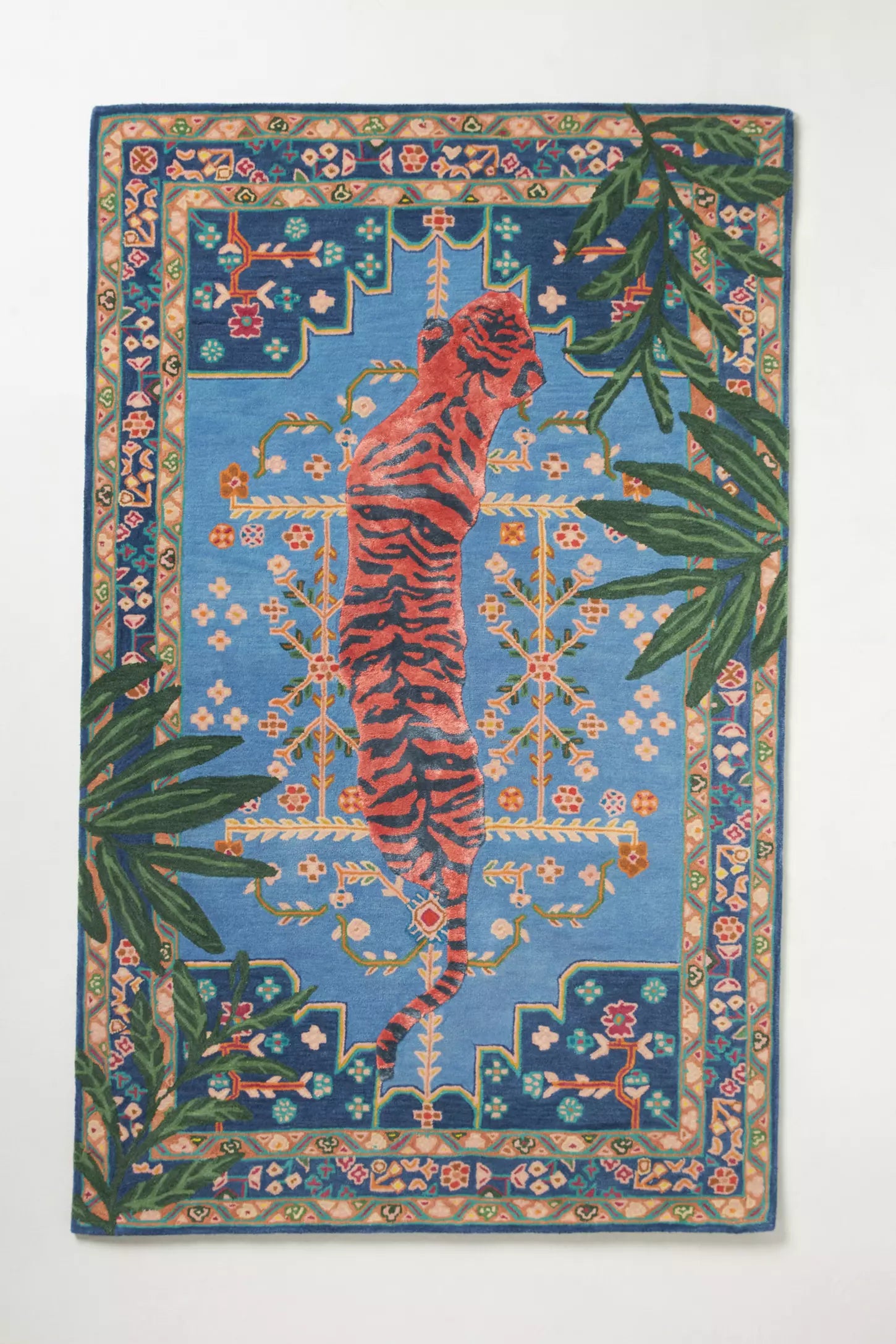 Bengal Tiger Botanical Tufted Rug – Handcrafted Jungle-Inspired Wool Carpet for Living Room