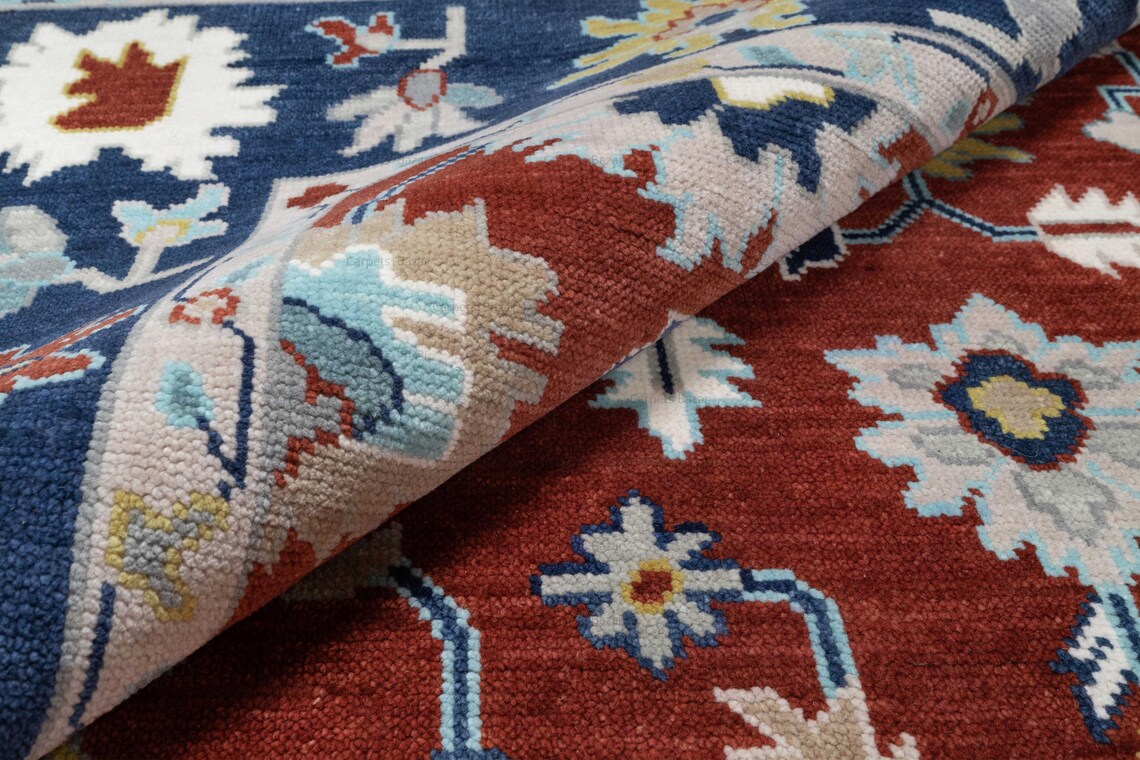 A striking blend of traditional craftsmanship and vibrant color, the Crimson Blossom Oushak is a hand-knotted area rug that makes a bold statement in any room. Its deep red base is elegantly contrasted by intricate floral and botanical patterns, bringing life and energy into your space. Perfect for a living room, bedroom, or dining area, this rug is both a piece of art and a functional accent.