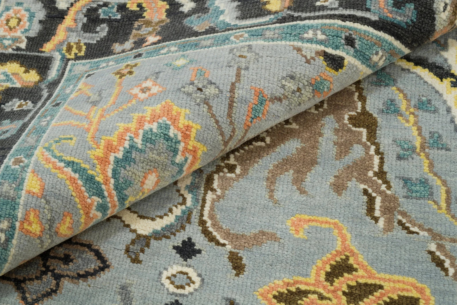 Handmade Turkish Oushak rug with a bold yet balanced design