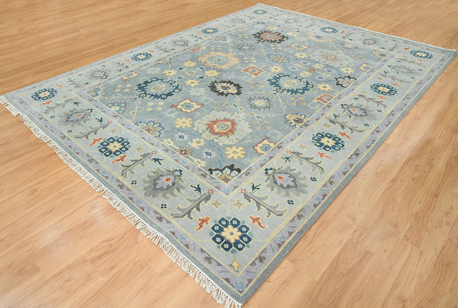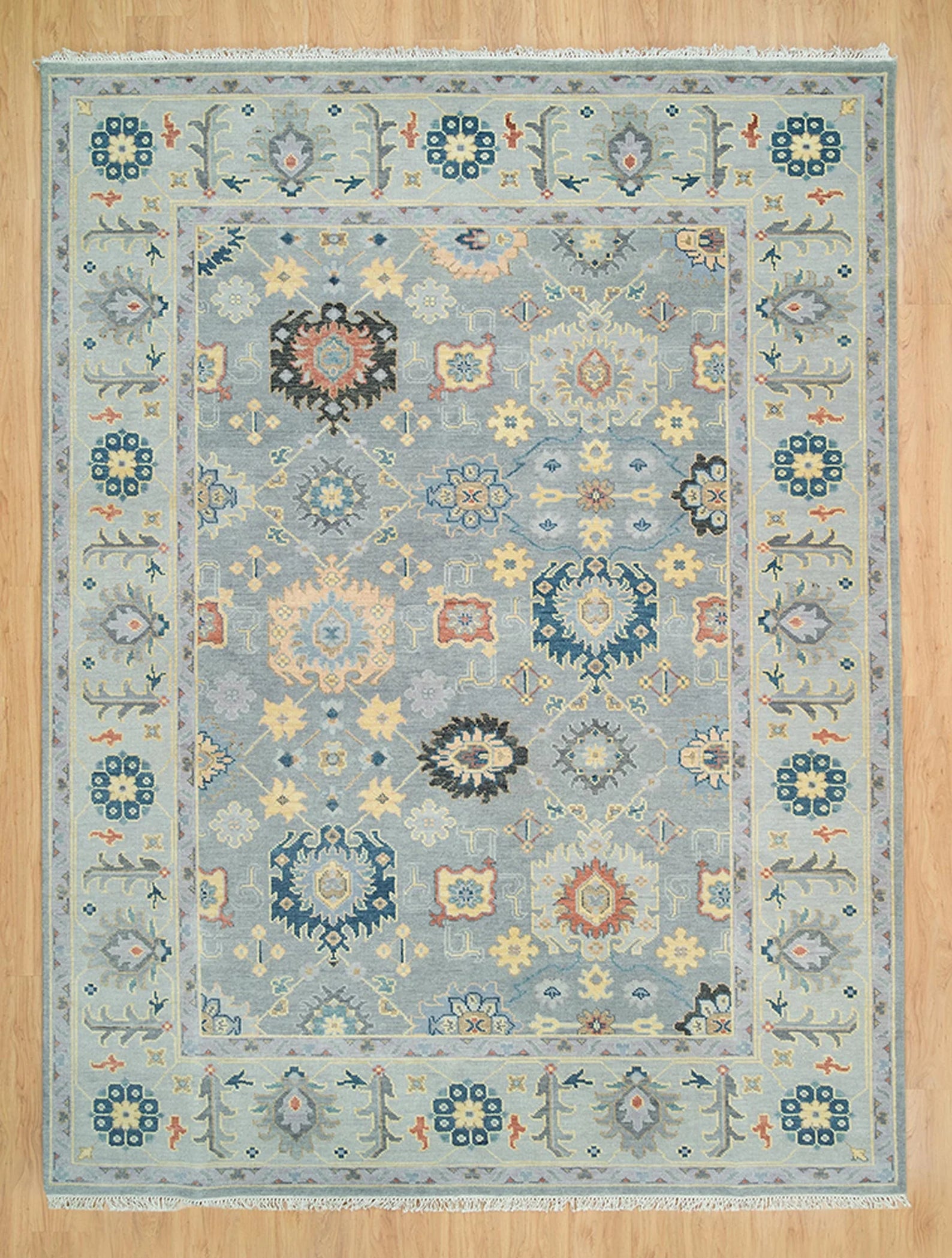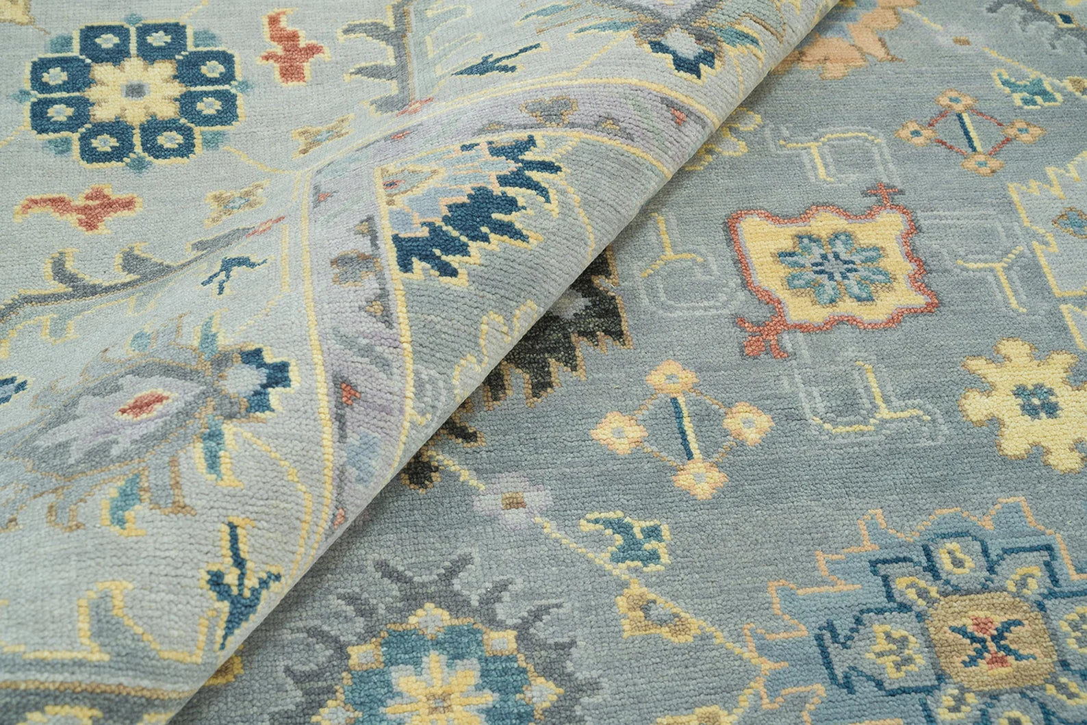 Graceful Tradition Meets Bold Color – Handmade Gray Oushak Rug with Floral Accents