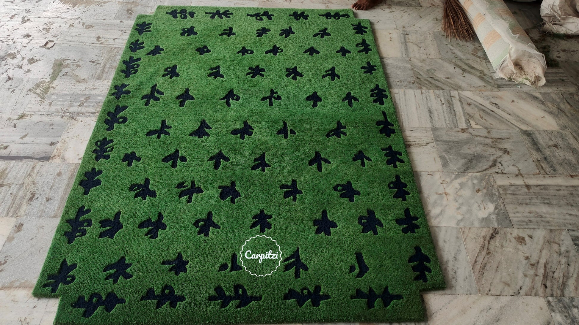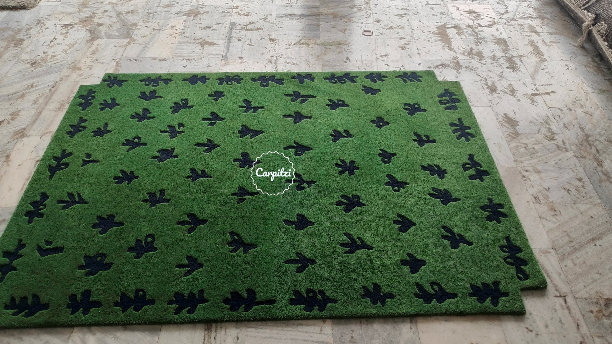 Green Botanical Hand-Tufted Rug – Modern Nature Pattern Carpet - 8x10, 9x12 Rug