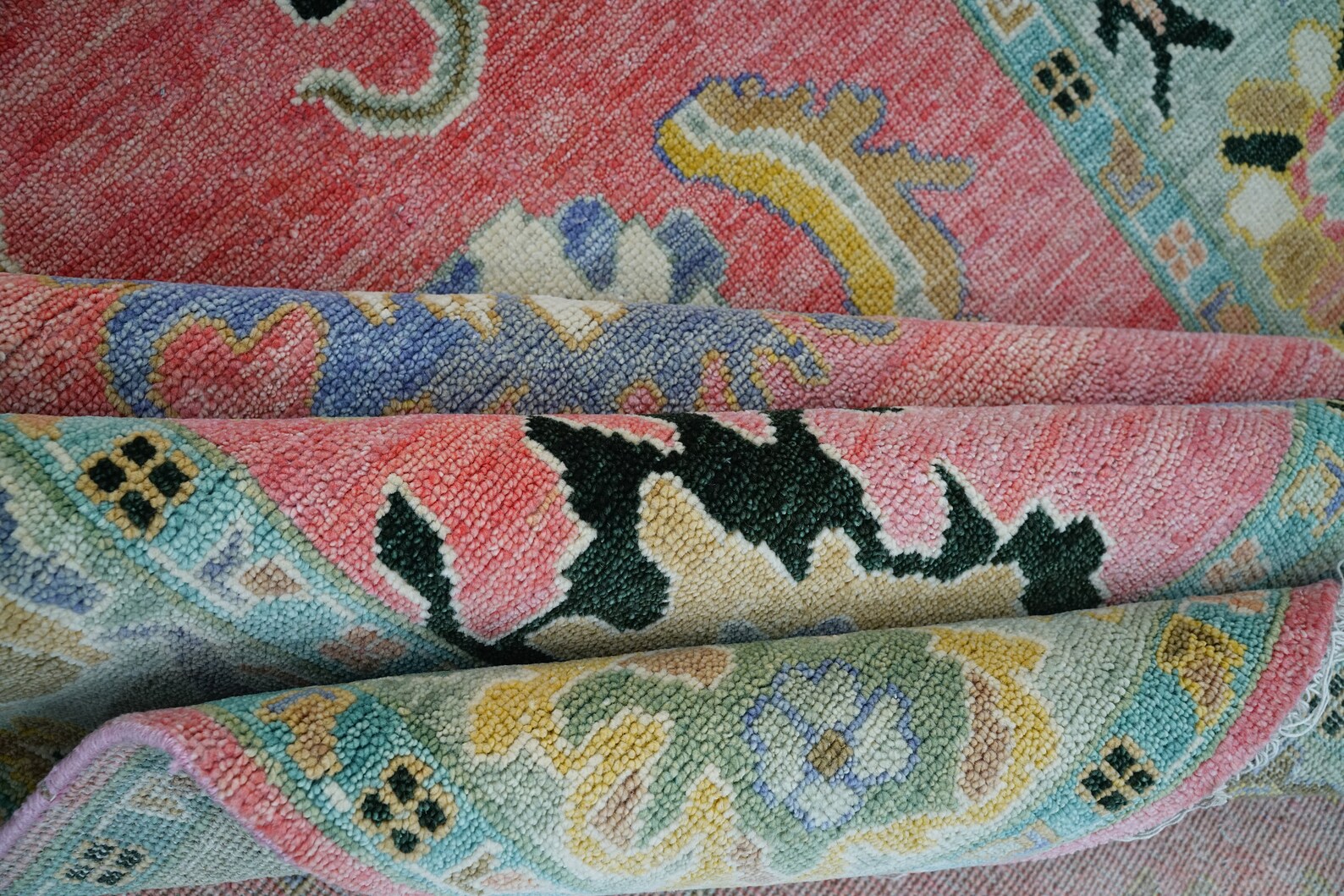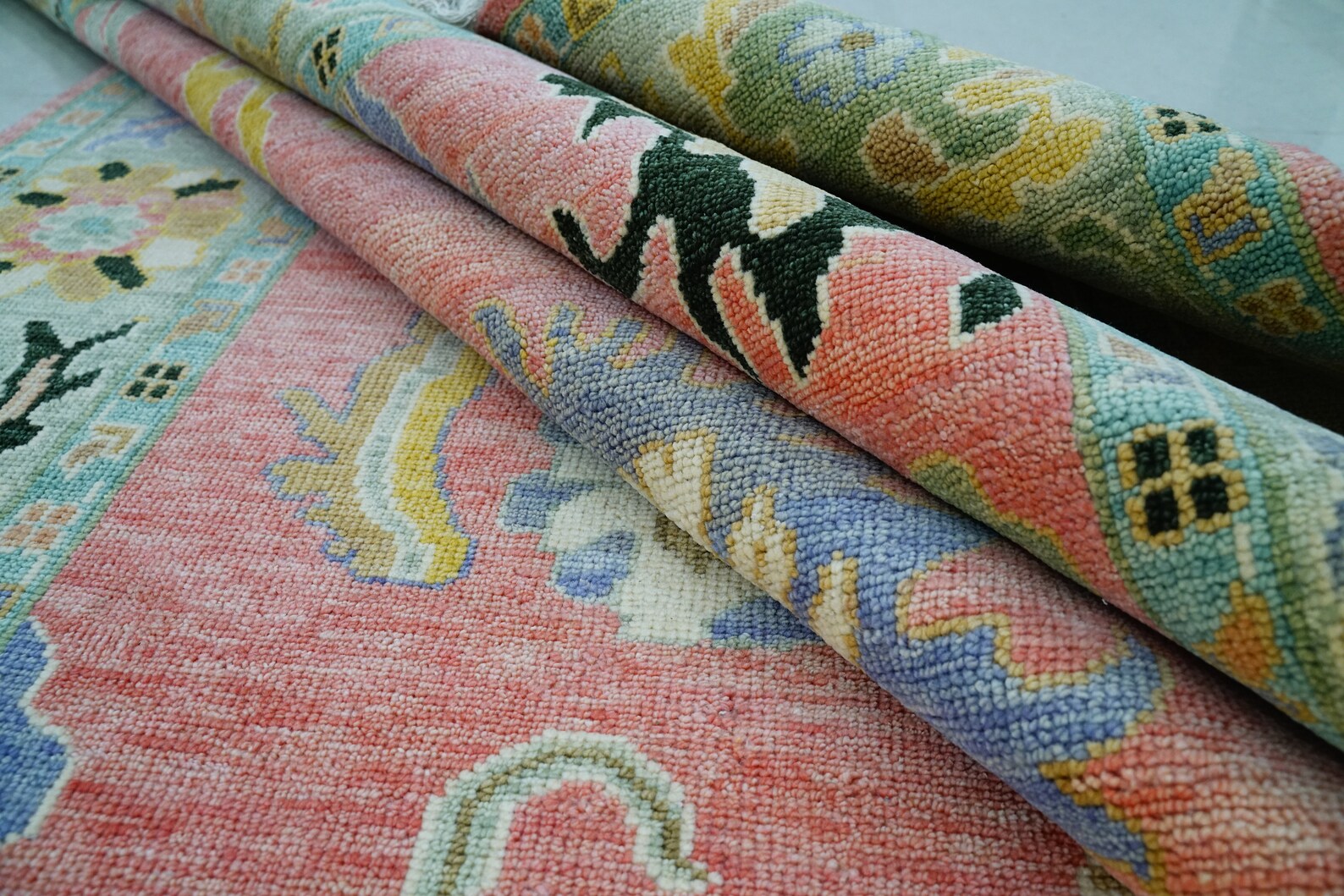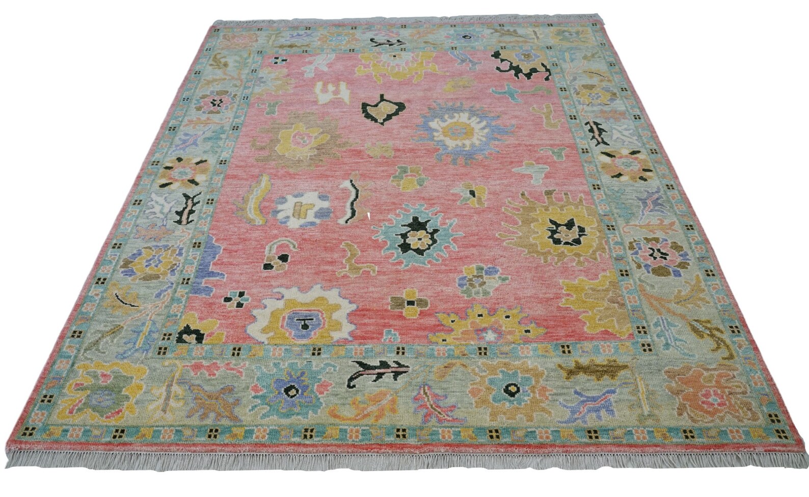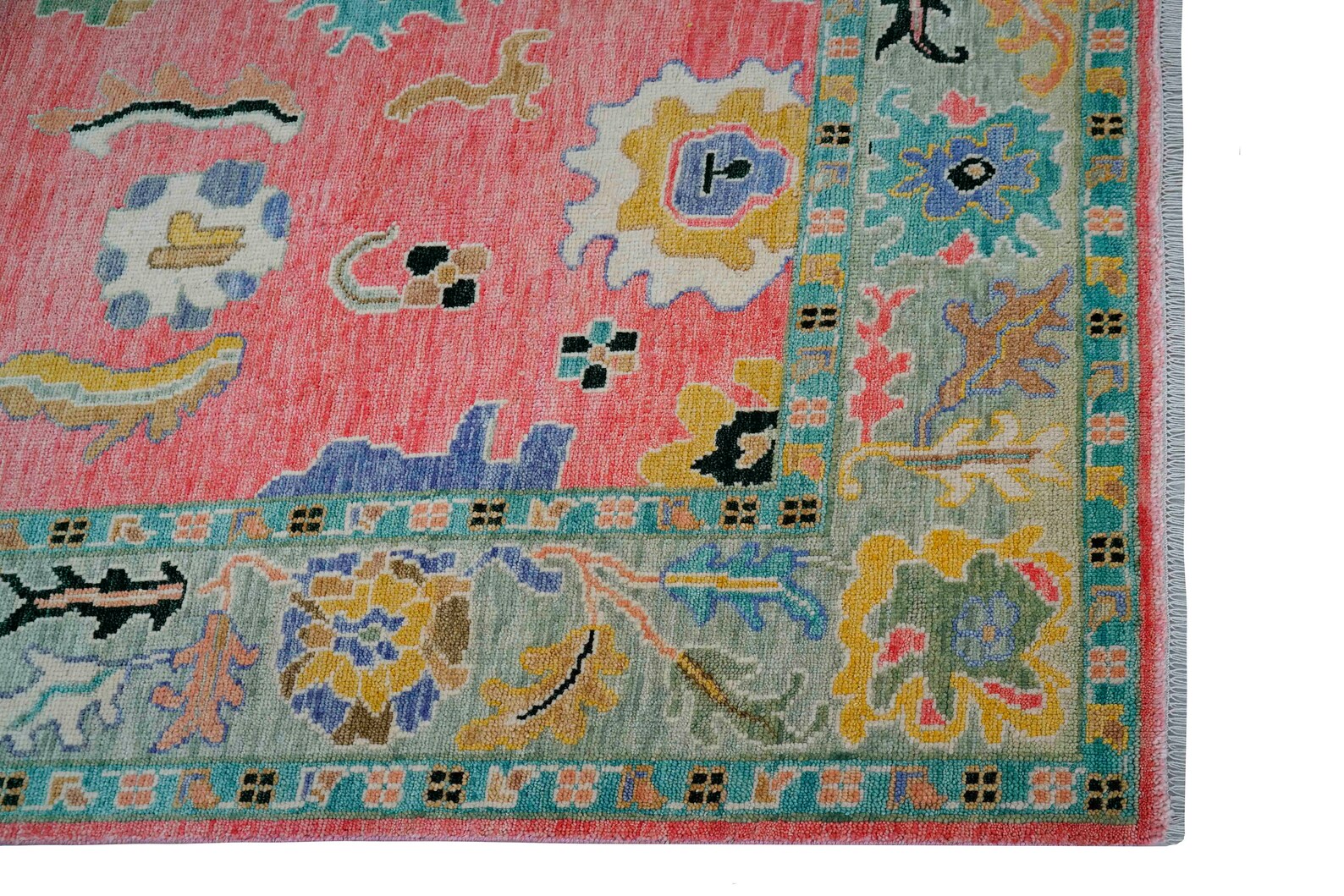 Handmade Pink & Moss Oushak Rug – Antique Ethnic Wool Carpet | Turkish Rug in Multiple Sizes for Living Room or Bedroom