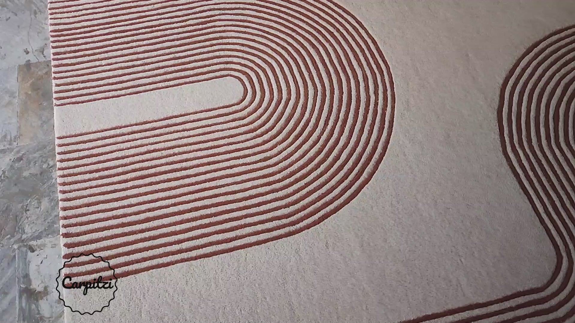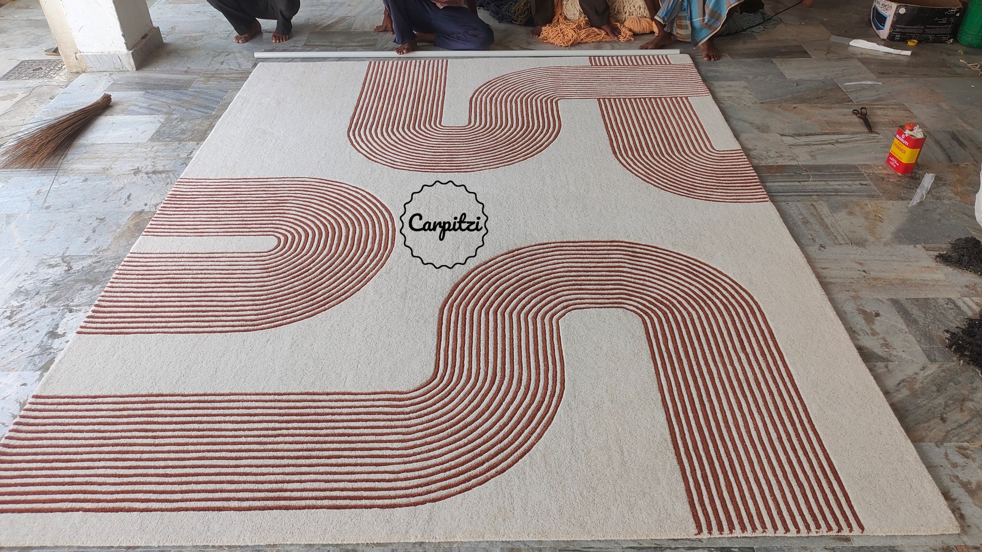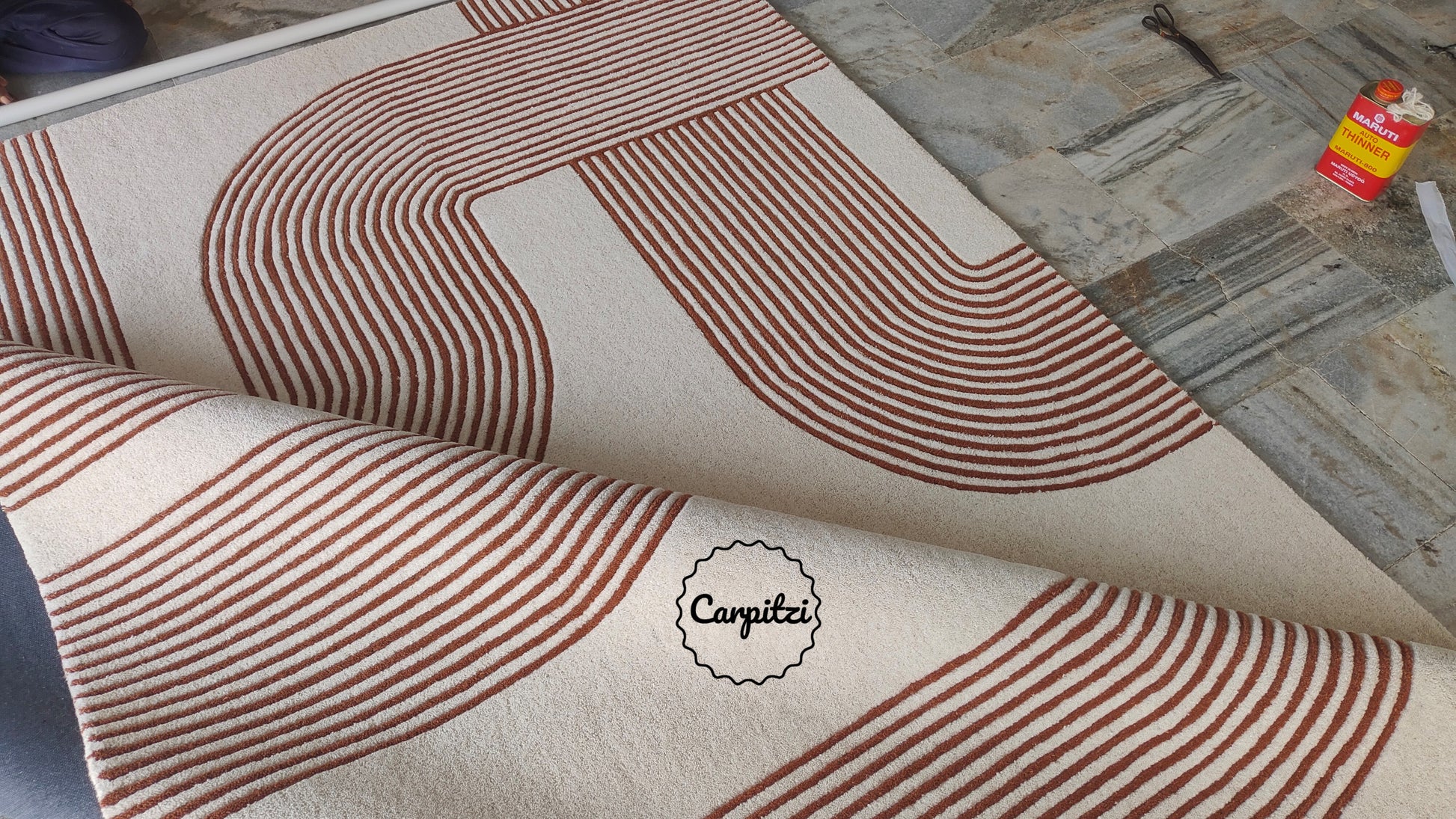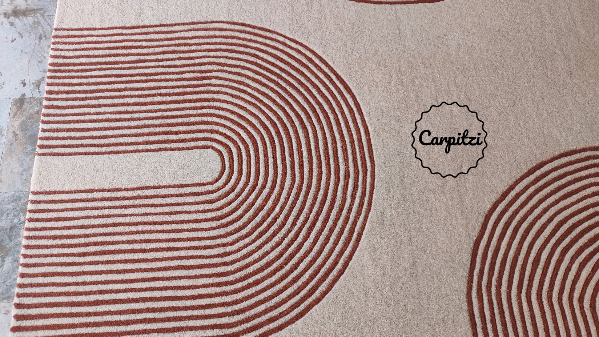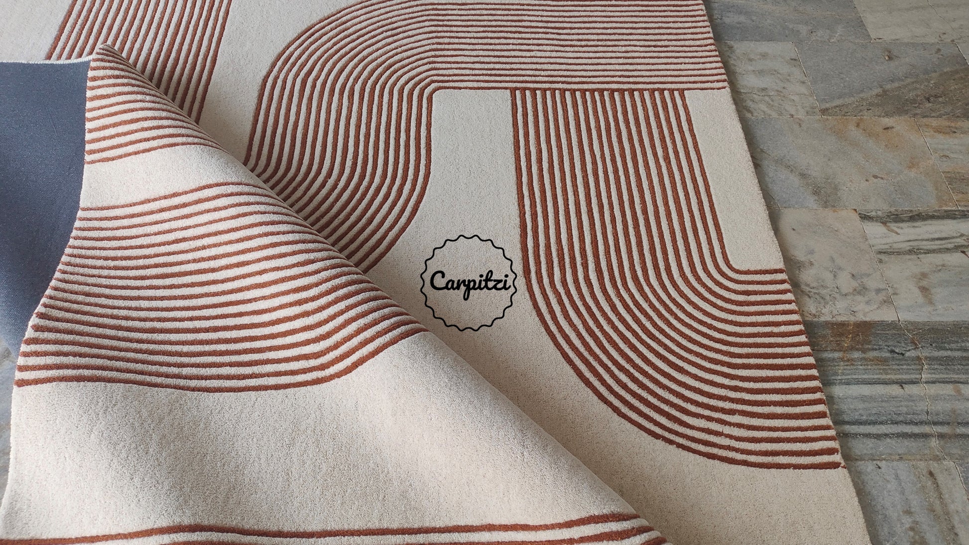 Modern Geometric Line Tufted Rug – Cream & Terracotta Abstract Curve Carpet