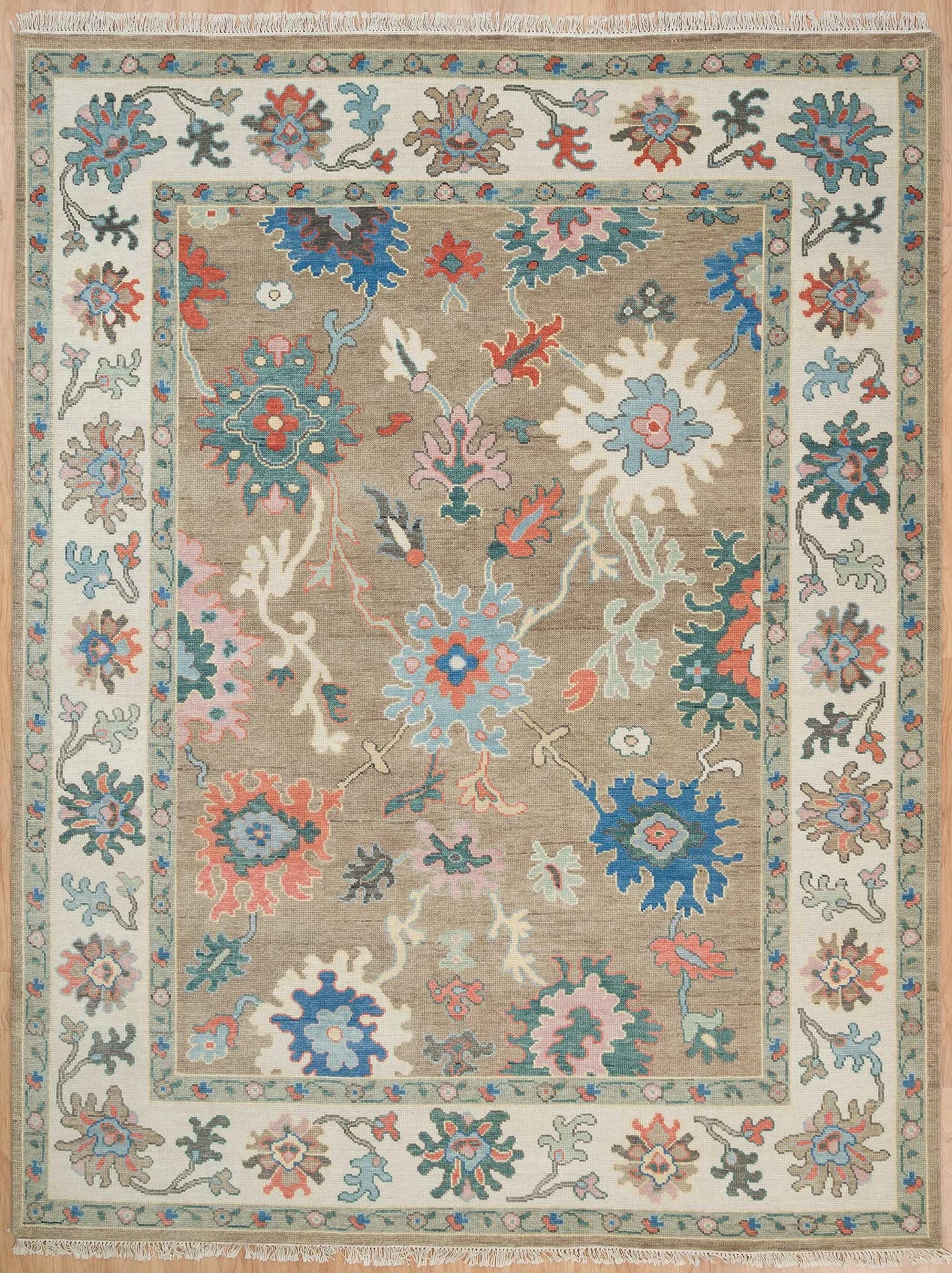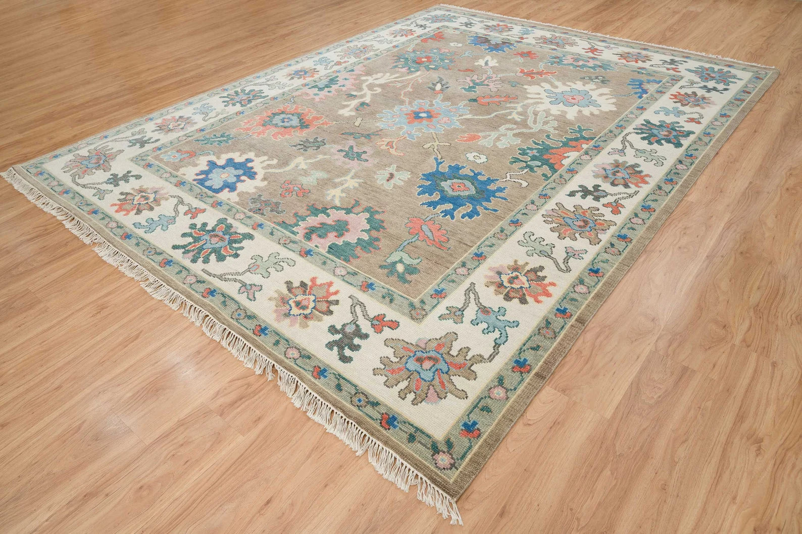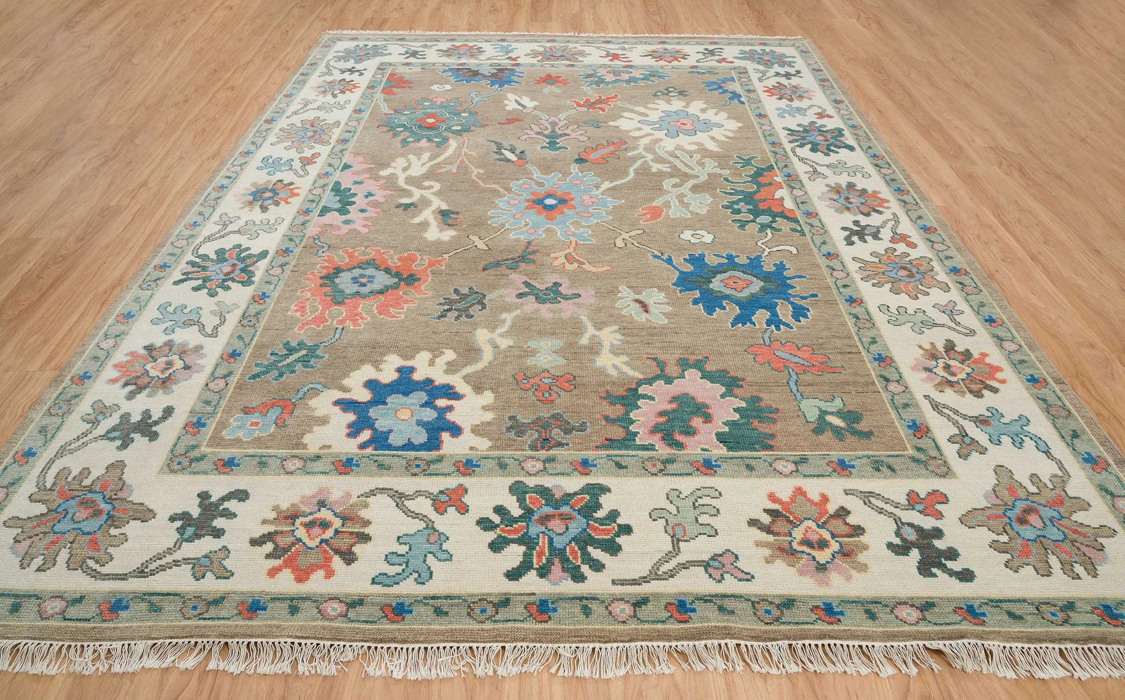 Neutral Oushak Rug – Beige & Ivory Wool Area Rug | Handknotted Turkish Rug 8x10 / 9x12 for Modern Bedroom or Living Room