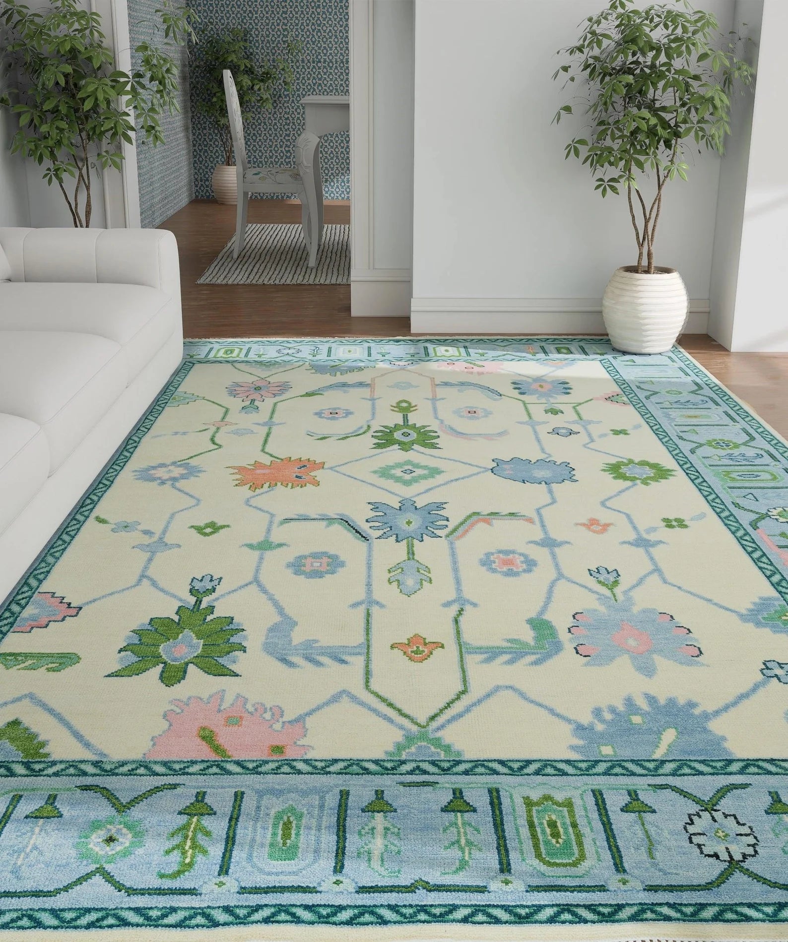 Authentic Oushak design with a fresh, modern twist