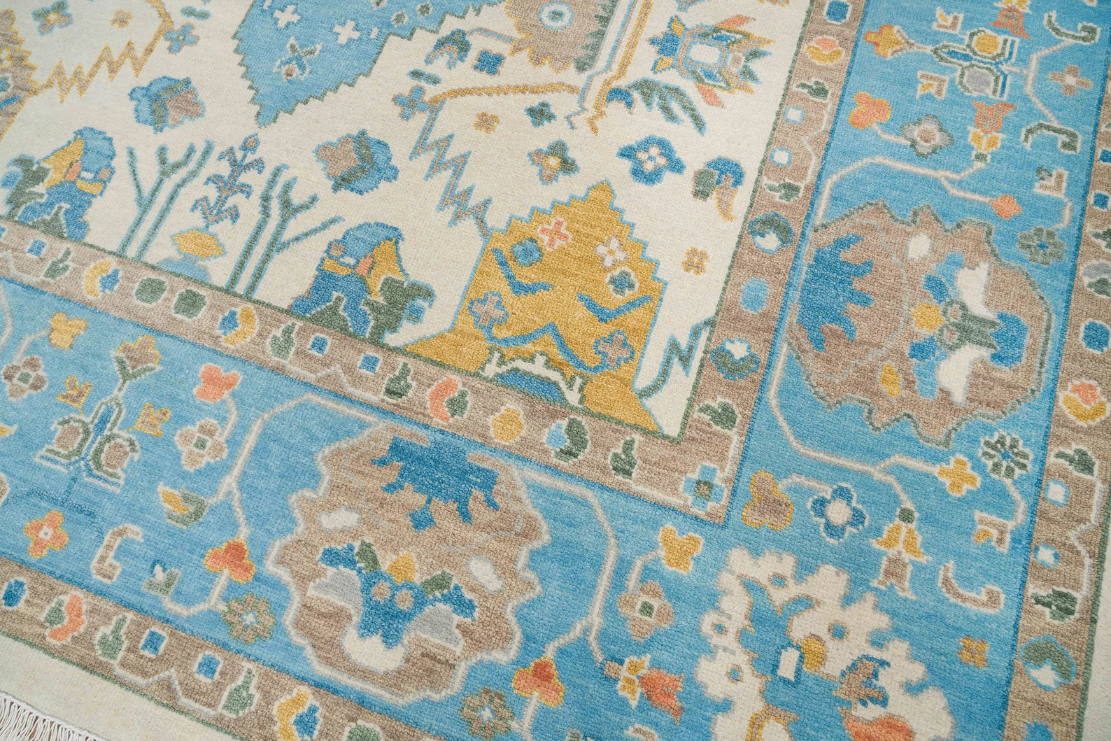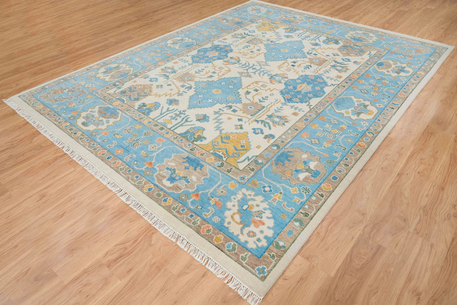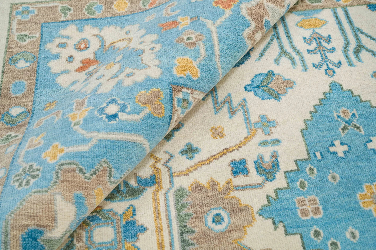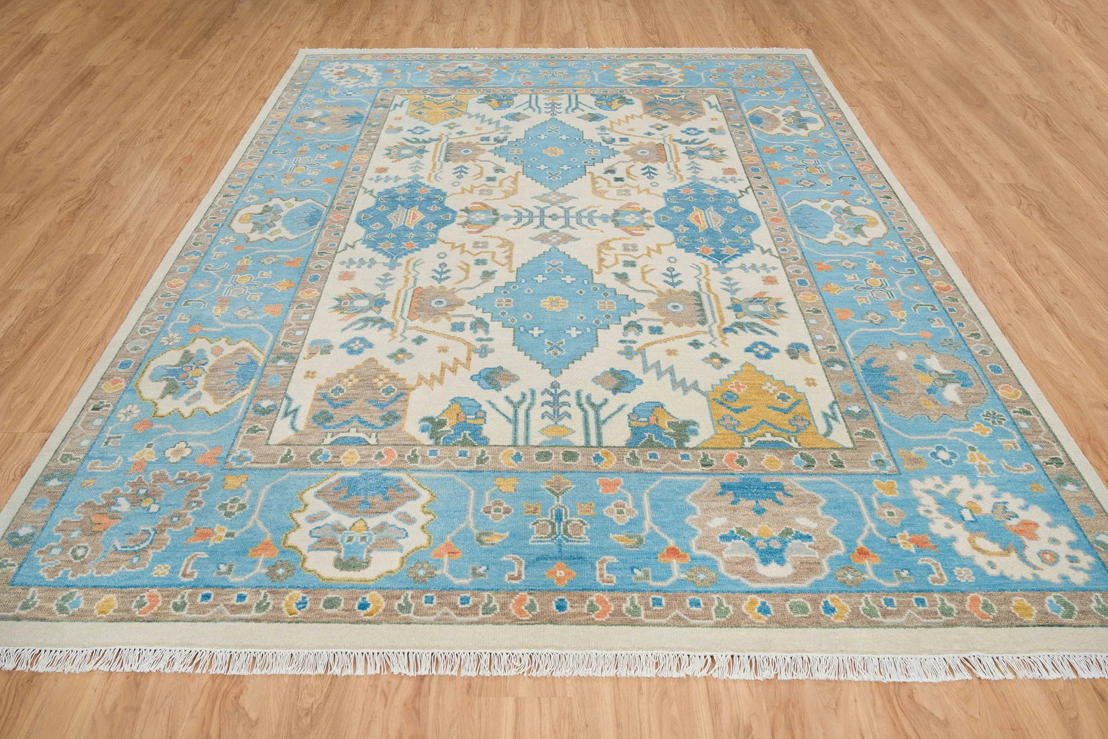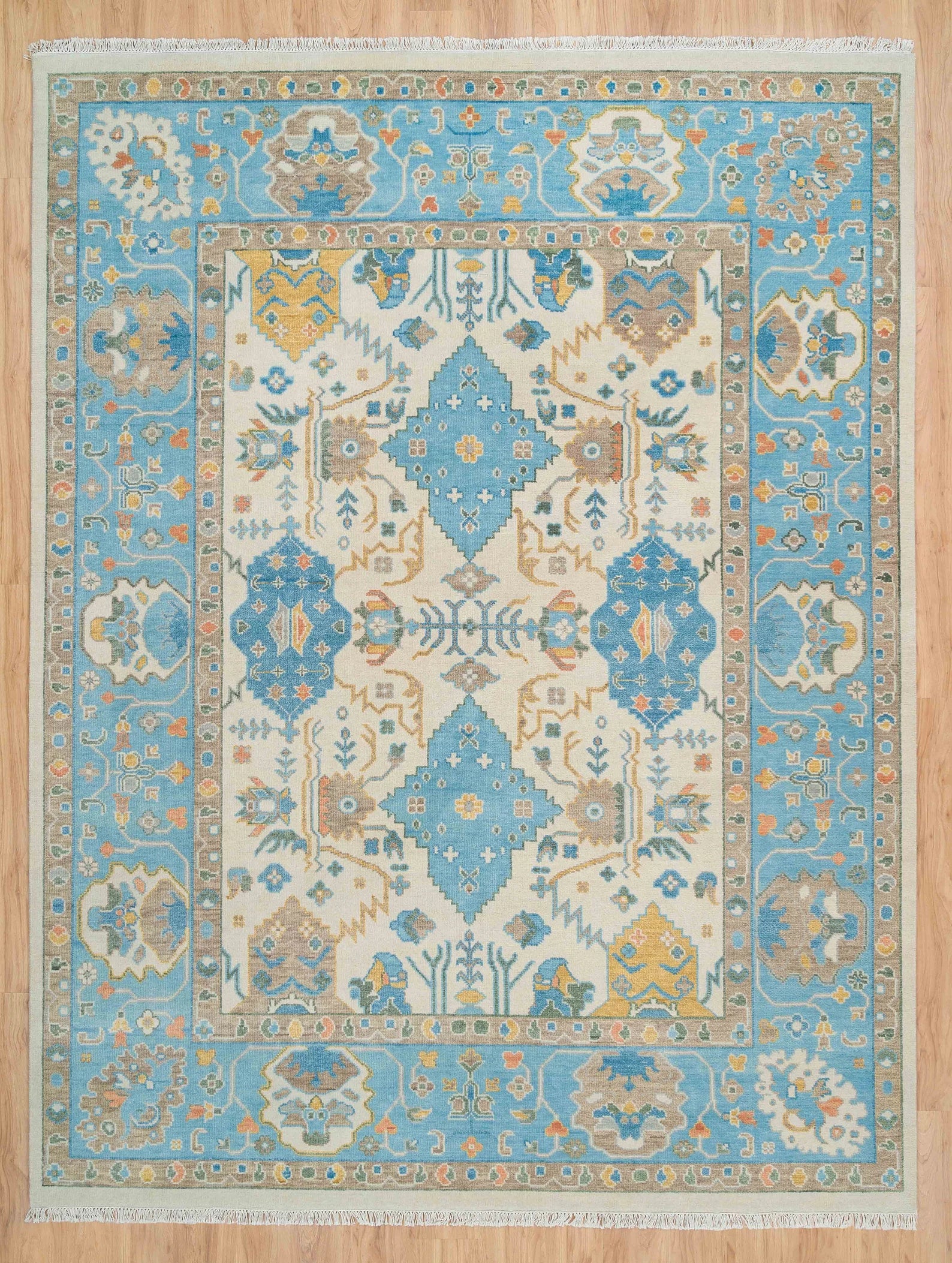 Elevate your home with the warmth and artistry of this handmade Modern Oushak rug, available in 8x10 and 9x12 sizes. Featuring a sophisticated palette of mustard gold, ivory, beige, and soft light blue, this rug is a refined yet colorful addition to any living room, bedroom, or dining area.