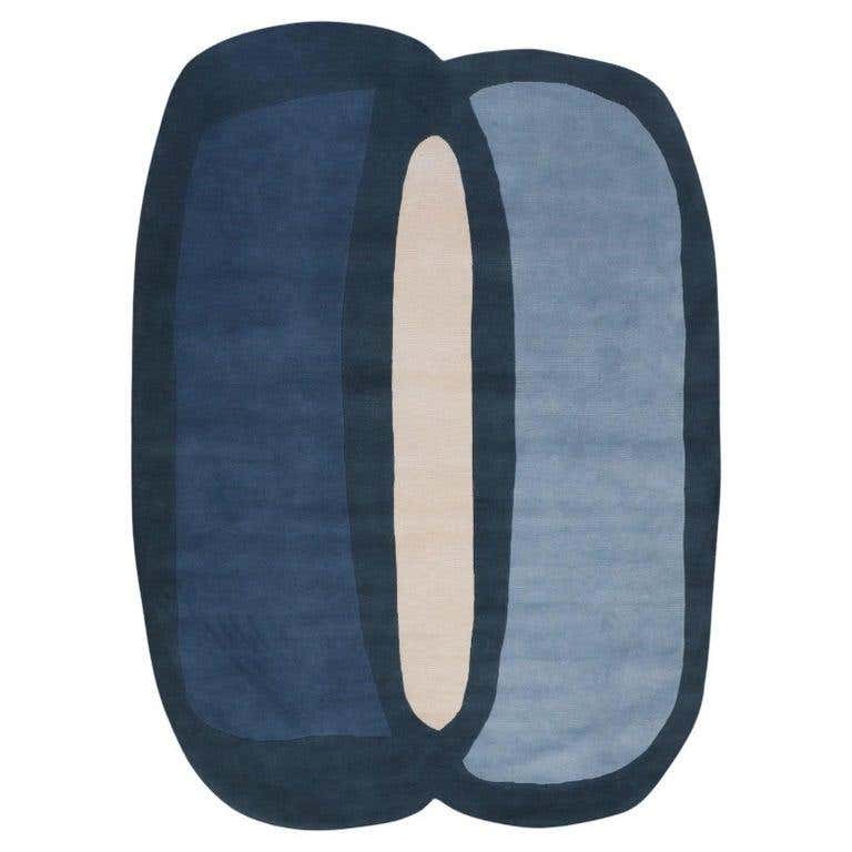 Modern Blue Wave Tufted Rug – Abstract Ocean-Inspired Wool Carpet for Living Room
